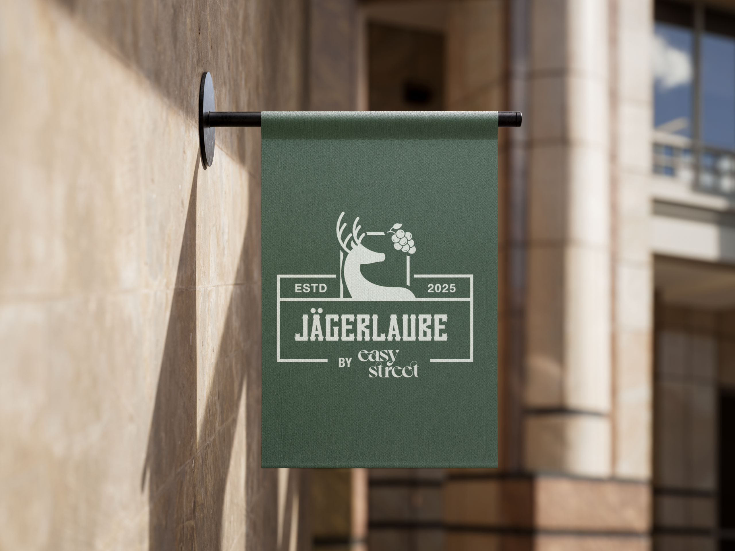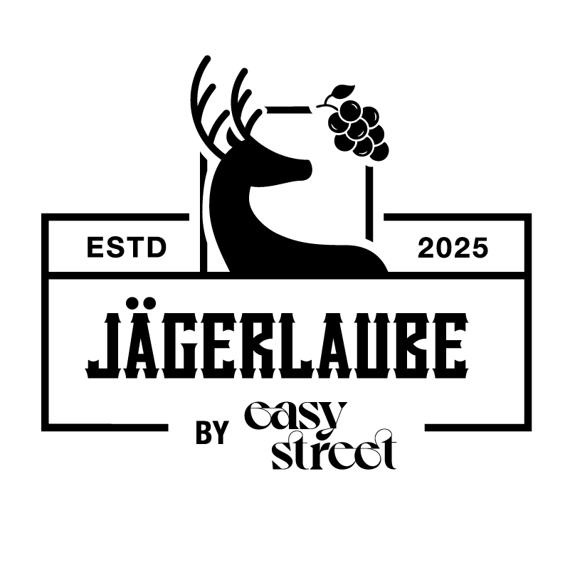 Jäegerlaube is German for hunting lodge. This visual identity offered a contemporary interpretation of Central Europe’s hunting culture while highlighting regional wines and cuisine. It was created for a local wine and champagne bar debuting at Germany’s renowned “Stuttgarter Weindorf” festival. Combining hunting traditions with a visually striking serif typeface appeals to a wider audience including the modern epicurean and the new wine enthusiasts. The design therefore had to stay close to what is visually recognizable for the great outdoors, game meat and the participating traditional wine booths.