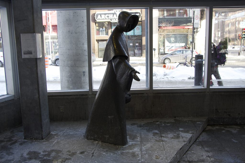 This was a challenge to commemorate Mother Émilie Gamelin, the founder of the first documented shelter in Montreal. A bronze statue stands at the main entrance of the station, but this artifact speaks less about her actions, but rather of her existence. This project was a study to understand how we can create an inviting space where shelter could be found in a public space. The shelter was initially built at this station, which was on the border of the small settlement’s limits. As the city developed, this train station was erected during one of the last world expos in 1964, destroying any visible marks of support for the unhoused. Mother Émilie’s hand still offers help and comfort to passerbys in a format for the built environment.